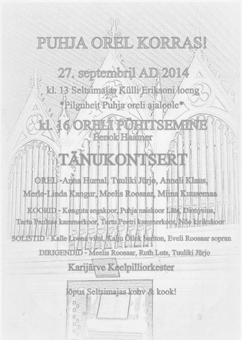 28. september 2014 - Olev Kents27.septembril toimus Puhja kiriku oreli taaspühitsemise tänukontsert.