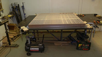 I manuaali tuulepõhjad valmivad arvatavasti aprilli teisel nädalal. Kuna need põhjad on küllalt suured 130x130 cm, siis pidime nende liimimiseks tegema uue liimipressi.
